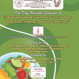 One Day National Seminar on Advancing Food and Nutritional Security in India Innovations, Challenges and Future Directions. Sponsored by ICSSR - SRC Hyderabad under the Theme Vision Viksit Bharat - 2047. Date- 31, Jan, 2025. Organized by Post Graduate and Research Department of Economics, Kamaraj College Autonomous, Thoothukudi, Tamil Nadu, India.